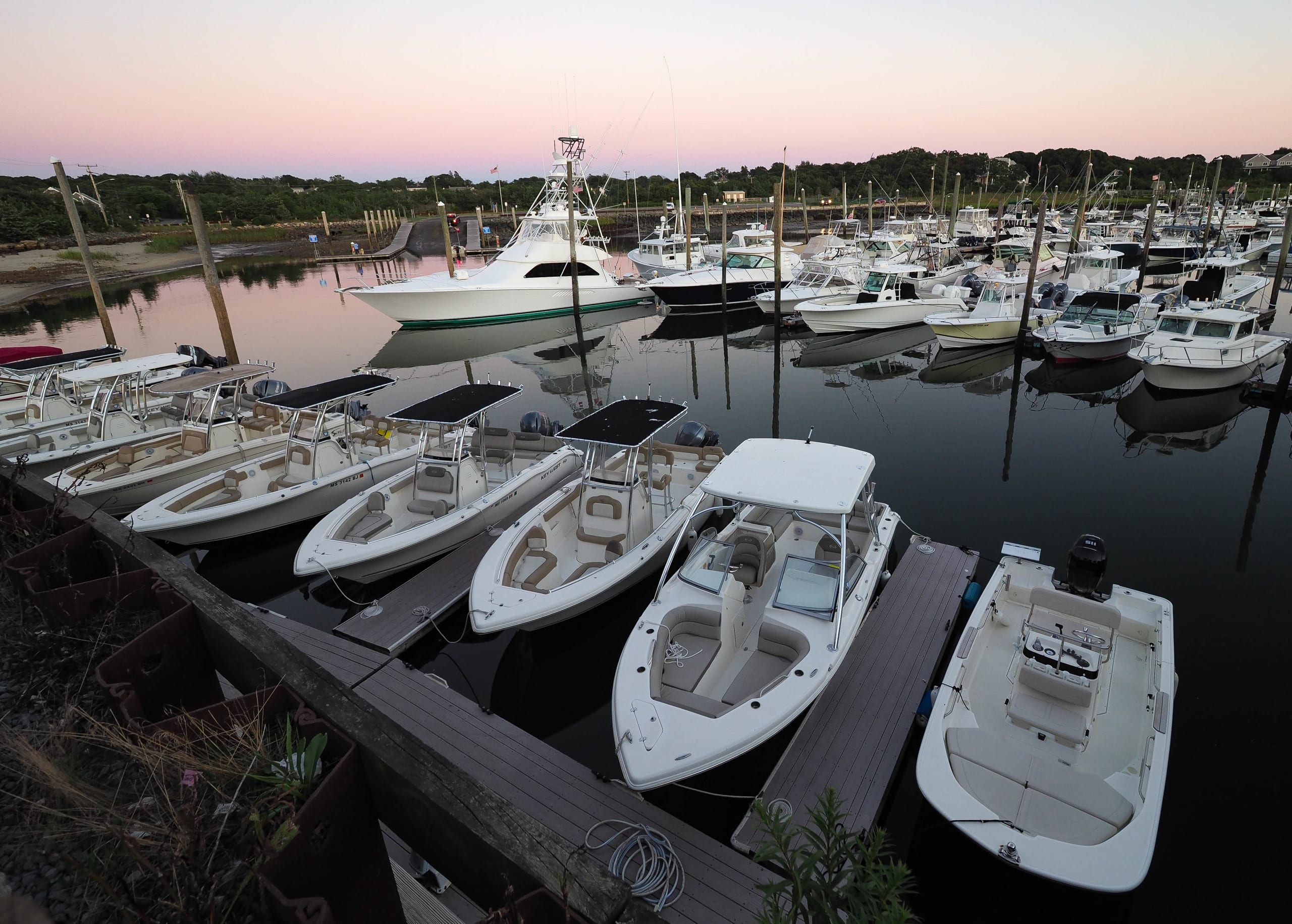 Boats line up at the marina in Sesuit Harbor. Pam LeBlanc photo