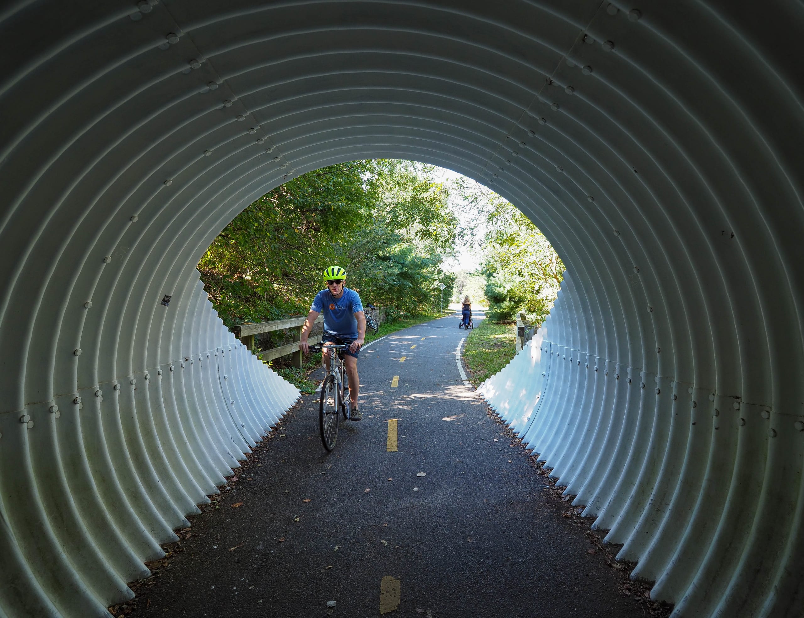 Chris LeBlanc pedals through a tunnel on the Cape Cod Rail Trail. Pam LeBlanc photo