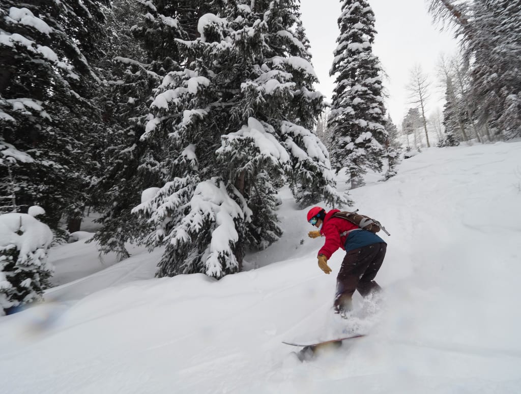 Collis Williams snowboards through deep powder at Solitude Mountain Resort. Pam LeBlanc photo